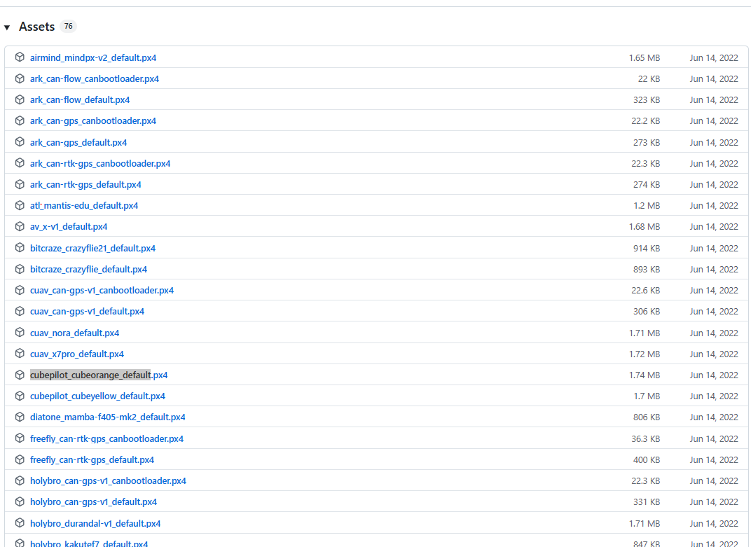 Hey, I have tried to download PX4 1.15.4 stable firmware for the cubeorange, and I can’t find the right file for it in the PX4-Autopilot-1.15.4 zip file 2 assets, while in older version 1.13.0 and below i see 76 Assets that I tried to upload a firmware and that did work, Can you provide a Guidnce on how to upload newer verson from 1.13.0 ?