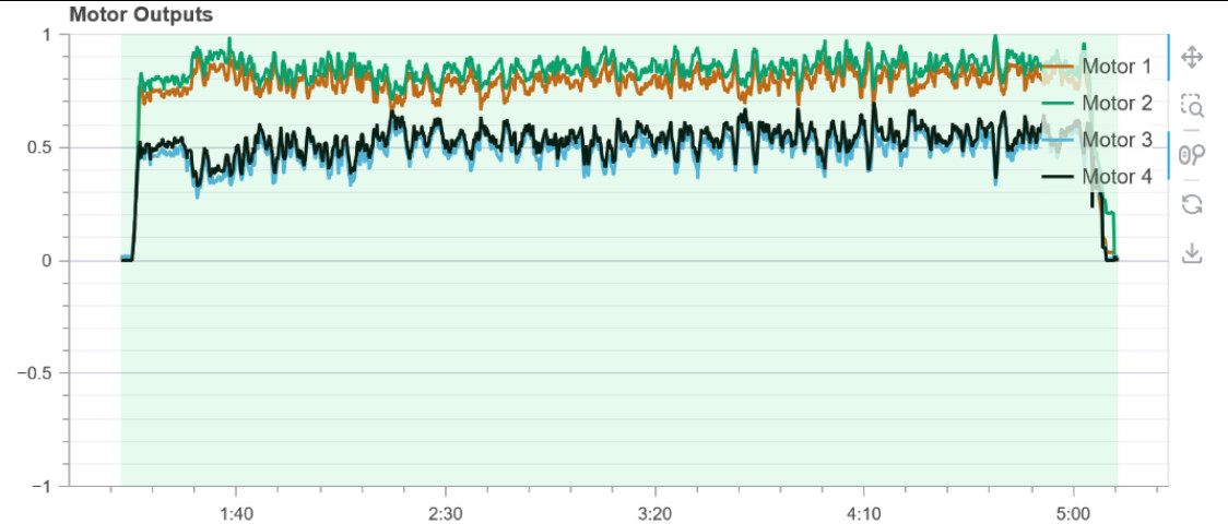Motors #3 and #4 are consistently on one side, while #1 and #2 are on the other side. The carbon frame follows the order #1, #3, #2, #4 and remains essentially level, with the sum of the power output of #1 and #3 basically equal to that of #2 and #4. I really can’t figure out what the issue is.