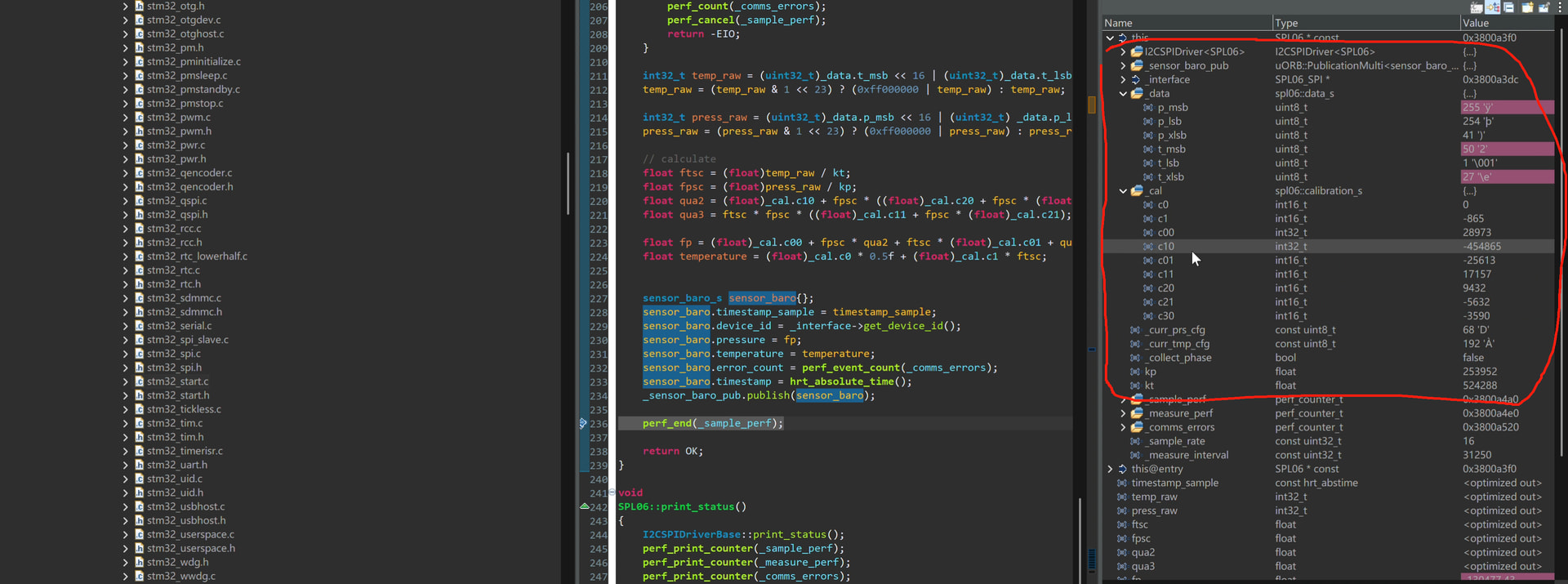 Hi, rroche, I think I’ve found the root cause of the problem. It lies in this file(SPL06_SPI.cpp): the data buffer filled during SPI multi-byte read operations was misaligned.