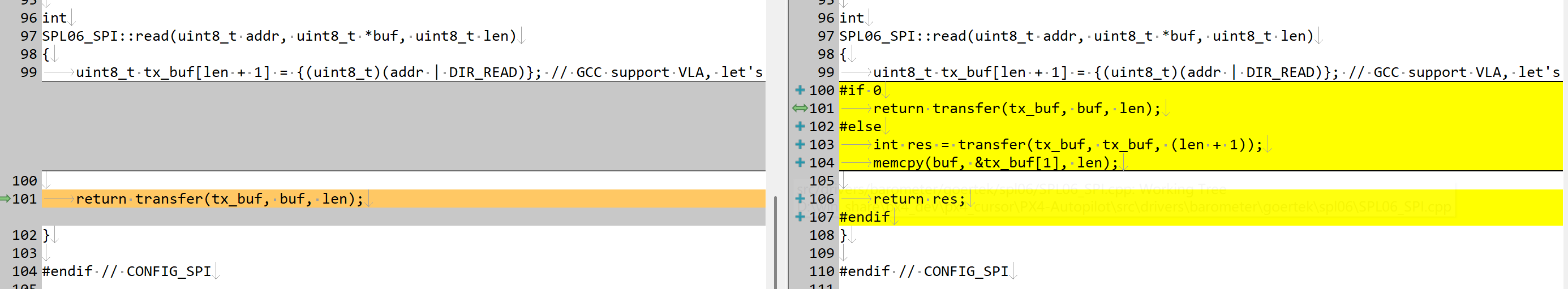 I have designed a small copter myself. In my sensor design, I used a combination of the BMI088 and SPL06, which share the same SPI bus. During testing, I noticed it is very strange in the SPL06 sensor data(The data looks completely abnormal; both the temperature and pressure readings are erratic.). However, all sensors work perfectly under the same conditions when using the ArduPilot firmware(It can fly normally.).