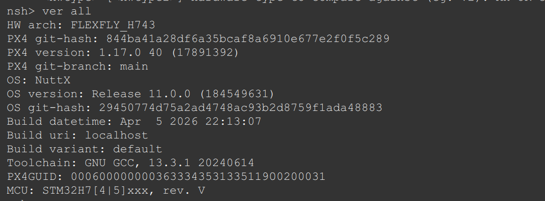 Hi rroche, thanks for your reply! Below is my software version information. I’ll try to submit a code pull request later (the main work on the local code is adding support for board-level hardware definition files, with no modifications to other parts of the code). Due to the barometer issue, actual flight testing hasn’t been carried out, so no actual flight log files have been generated yet. I’ll keep researching this.
