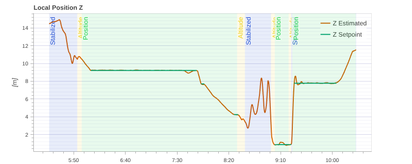 I have a custom-built drone with a CubeOrange FC (PX4 v1.14) and a Here2 GNSS module. I was trying the position hold mode flight at approximately 10m altitude. I took off in STABILIZED mode, switched to ALTITUDE mode, and then to POSITION mode at 9m.