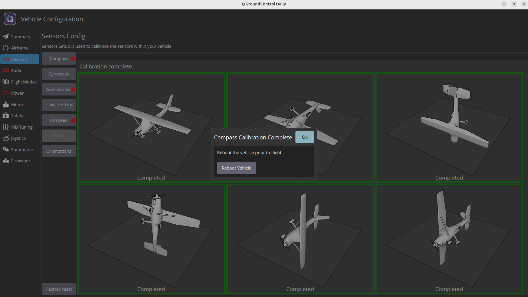 Below is a screenshot of after calibration is completed. After reboot, Compass calibration is still red.