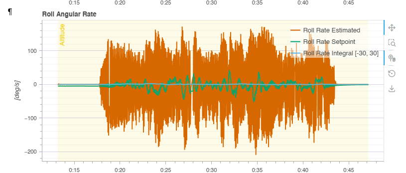 I have now gotten stuck in a problem where my drone is oscillating / vibrating. Firstly i though it could be vibrations from the motors going into my pixhawk and ruining the sensor values / regulator. Therefore i mounted it on a anti-vibration rubber mount, this however did not improve the performance. This made me look more into logging and activated more logging options and follow the “vibration isolation” and “Log Analysis using Flight review” guides from PX4. I can clearly see that the drone is vibrating more than it should from the guides. However i can see some weird motor commands where the motor outputs goes between 0-100 continuously, shown in this log: