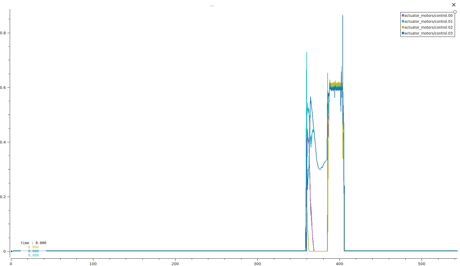Obviously, the simulator’s outputs for the motor control signals are a lot more consistent. I’ve attached pictures of both to show the comparison. I’ve also attached a link to the flight review for a real life test.
