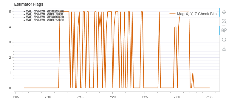 This will casue the EKF2 internal estimator to get wrong readings and ignore the magnetometer.