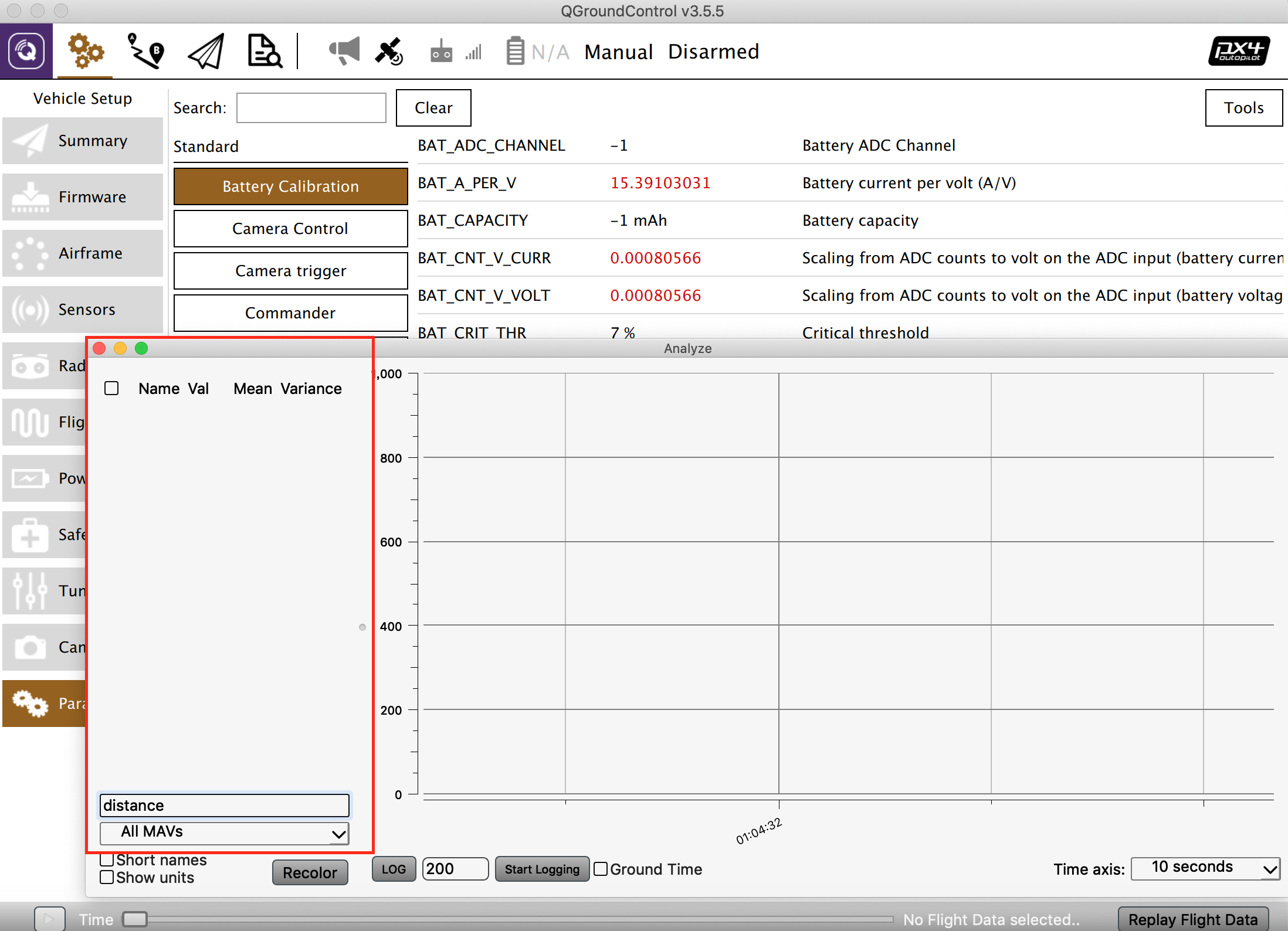 Here are the results I got using the mavlink shell.
