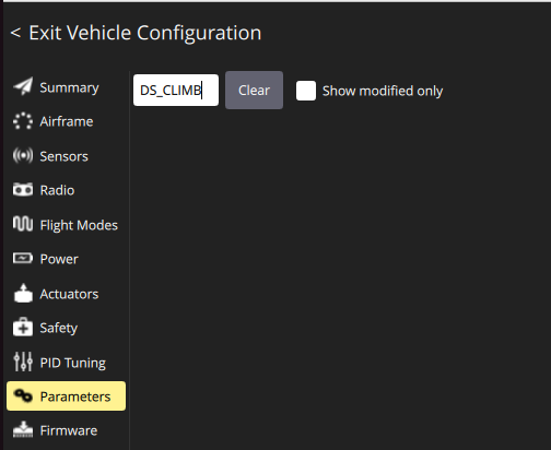 However, as I said before, the group “FW DS” and the parameters inside (like DS_CLIMB on the picture) do not appear on QGC.