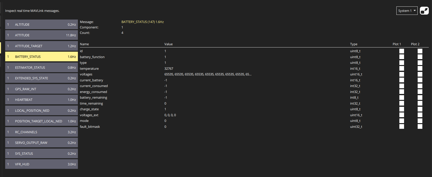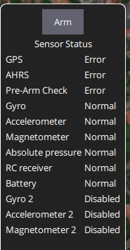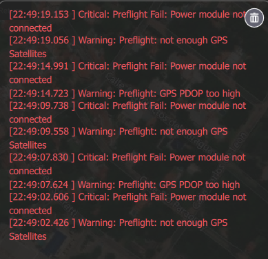 Of course, when the voltage percentage shows “–.–%”, the quadrotor won’t arm. When it does show a valid reading, it sometimes arms, although initially only one rotor starts spinning. Additionally, my controller connection is unstable — sometimes it connects properly, other times I have to restart the vehicle to reconnect.