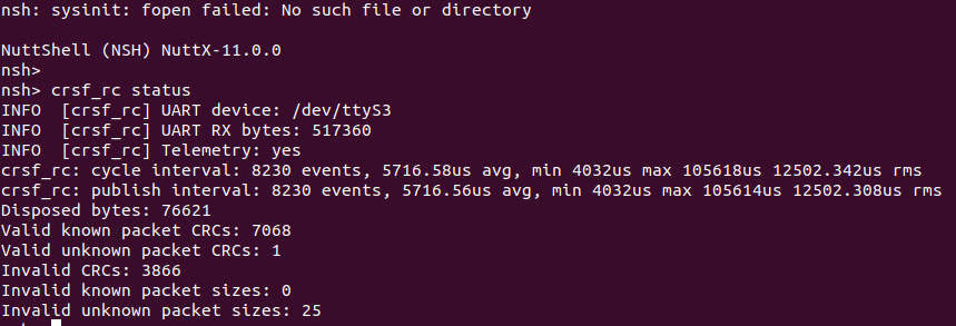Can anyone suggest how I should be trying to debug this issue? I connected directly to the FC using screen to get the nuttx prompt up, but am not actually sure if the output is normal or not, seems to have a fair few errors?