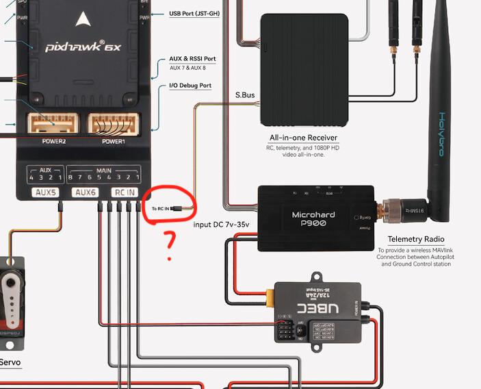 Hello, How do I connect R86C to PixHawk 6x. All RC IN ports in PixHawk 6x are used by connection from motors. Any help is much appreciated.