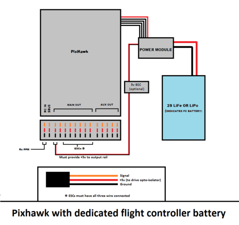 I need advice how wiring opto-isoleted ESC with PIXHAWK MINI