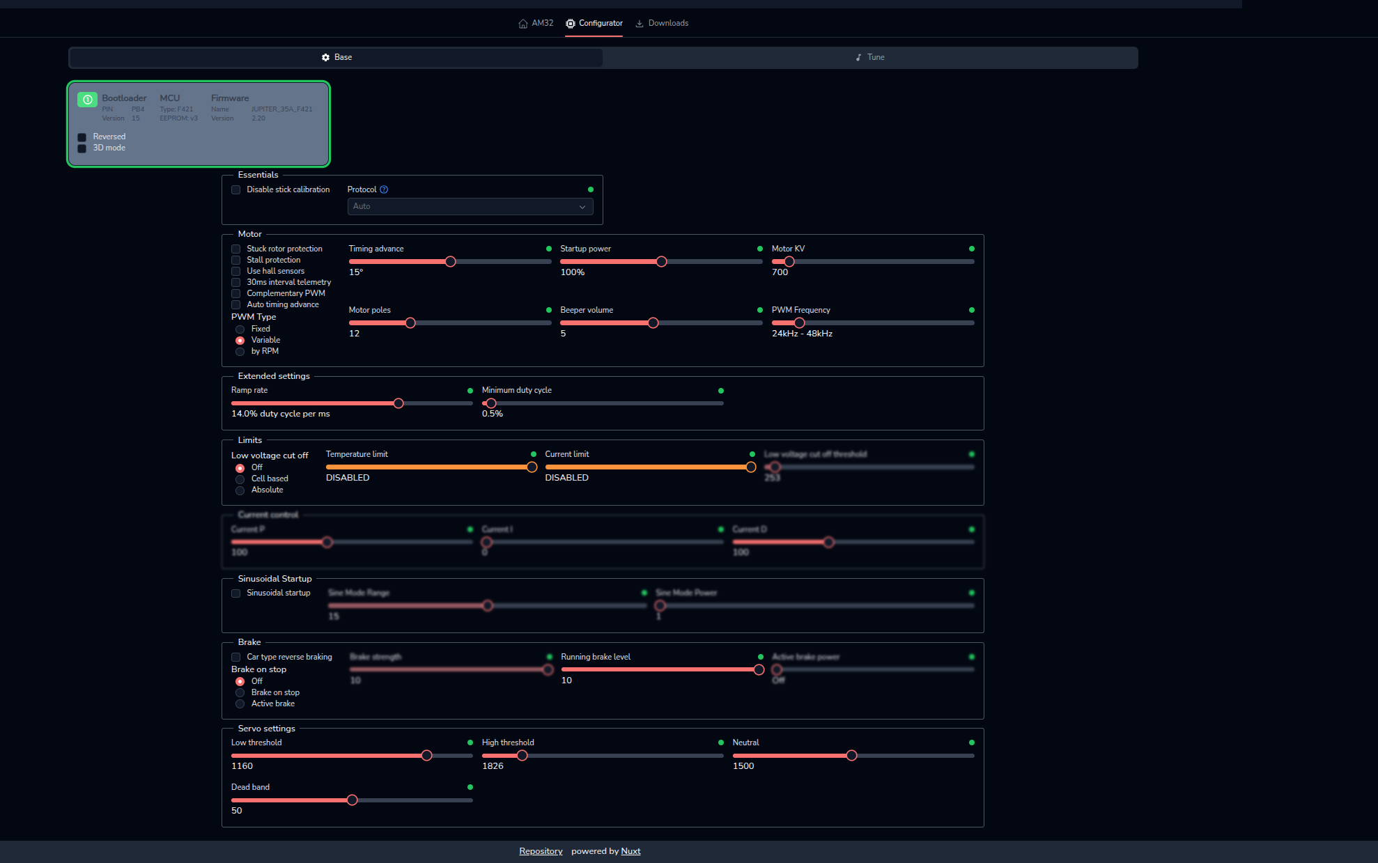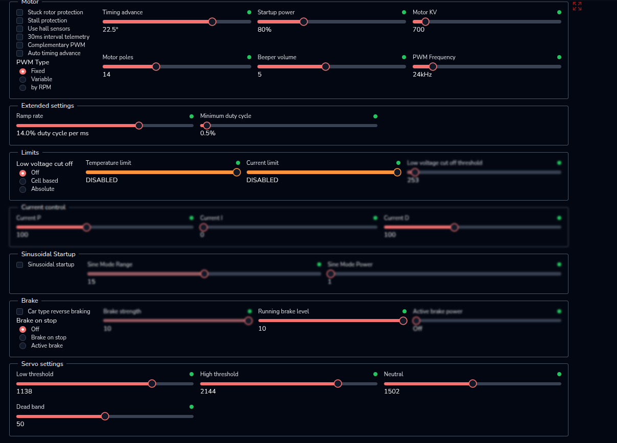 In the log files I see that the signal of “1999” is sent from the pixhawk to the ESC, but it never really transfers into high RPM. I tried DSHOT 150, 300 and 600, no difference. Here my actuator outputs logs: