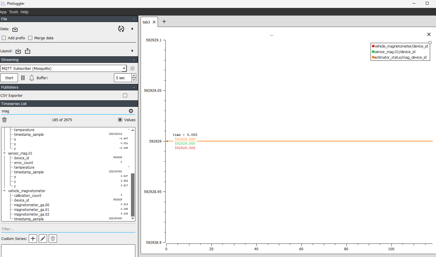 Hi, i think you meant CAL_MAG0_ROT as Pitch 180 right? If the orientations are detected correctly during the compass calibration routine then your rotation parameters are most likely correct, especially if it works in ardupilot. I did notice after setting CAL_ACC2_PRIO and CAL_GYRO2_PRIO to High , the post filtered gyro and accel values do look better to me, and consistent with moments in your previous flights where the estimator had this imu selected, these are good inputs for the estimator to have in general. I’ve never personally used ardupilot, but i’m assuming you chose frame class as quad and frame type as 3, i did skim through ardupilot’s src code and it’s setup for this configuration looks more simple than the H-frame config in PX4: