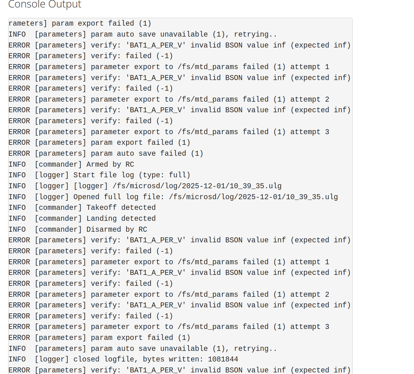 The param warning are I likely because we didn’t did the battery Amps/Vol calibration. We left the value blank, I think we should have put a dummy value here.