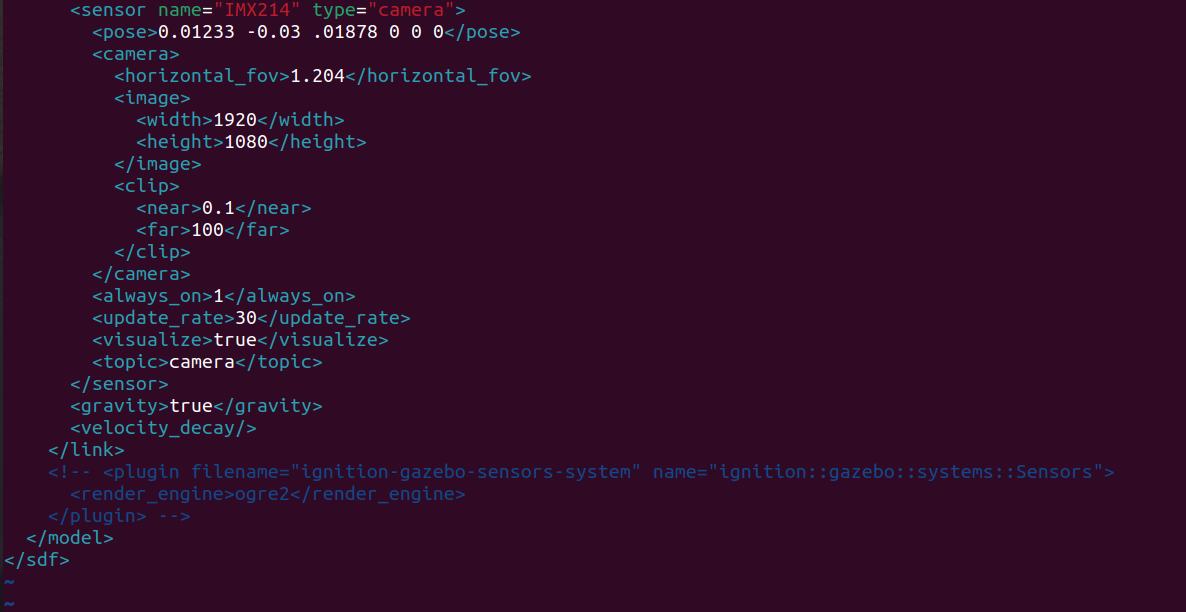 with the same output and I can see the image on my foxglove pane: [INFO] [1763635094.468501807] [ros_gz_bridge]: Creating GZ->ROS Bridge: [/camera (gz.msgs.Image) → /camera (sensor_msgs/msg/Image)] (Lazy 0)