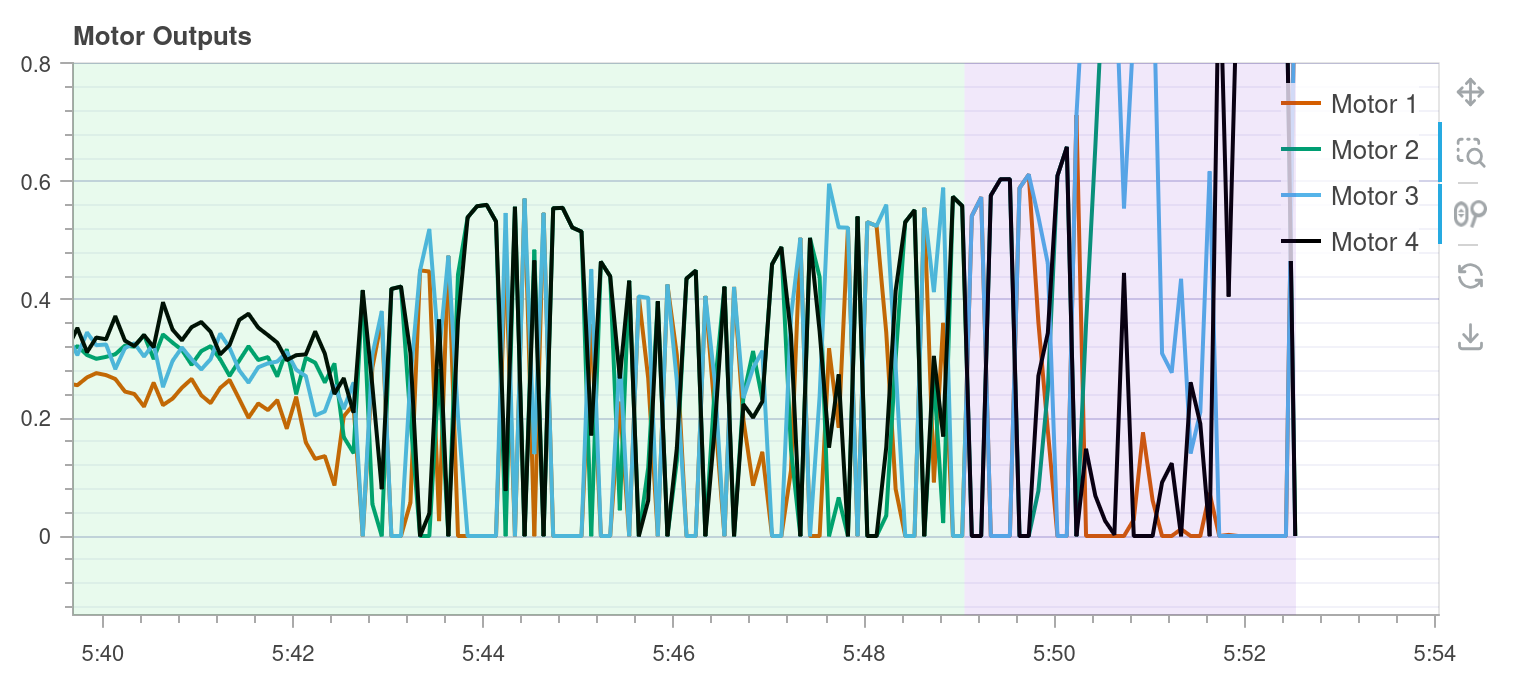 The motor outputs suddenly become much more extreme: