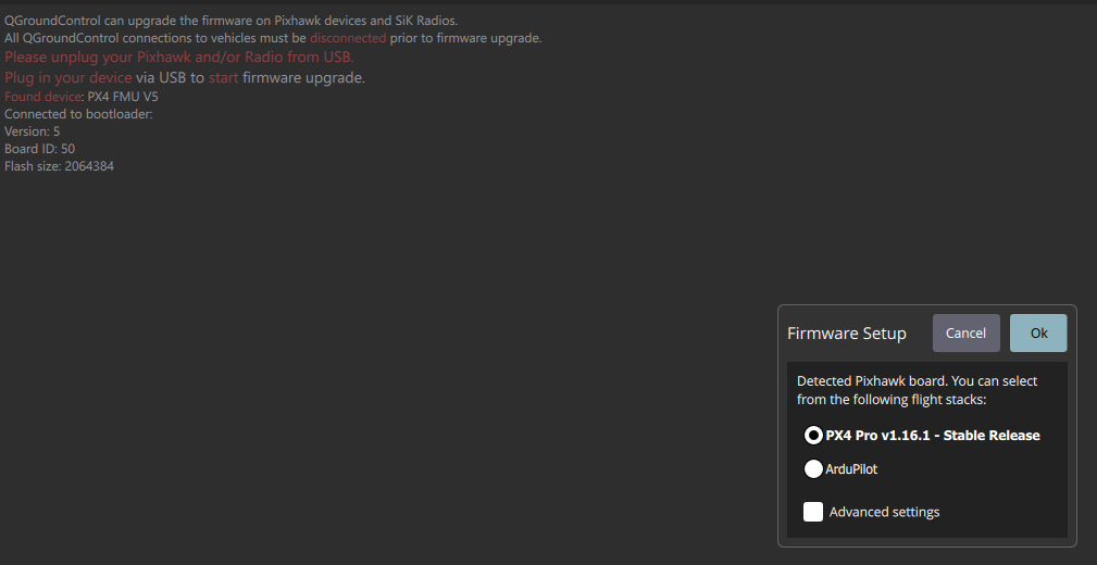 hello, i have stm32f765vit6 board. The board uses an external crystal of 8mhz, I edited the bootloader configuration and qgc recognized it. However, the fw configuration step is based on fmuv5. I edited STM32_BOARD_XTAL to 8000000ul and PLL as shown