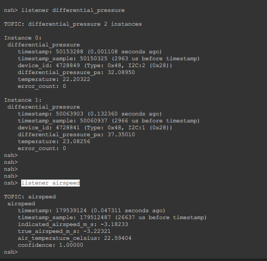 When I do listener differential_pressure I see two topics, but when I do listener airspeed it’s recognized just as one,